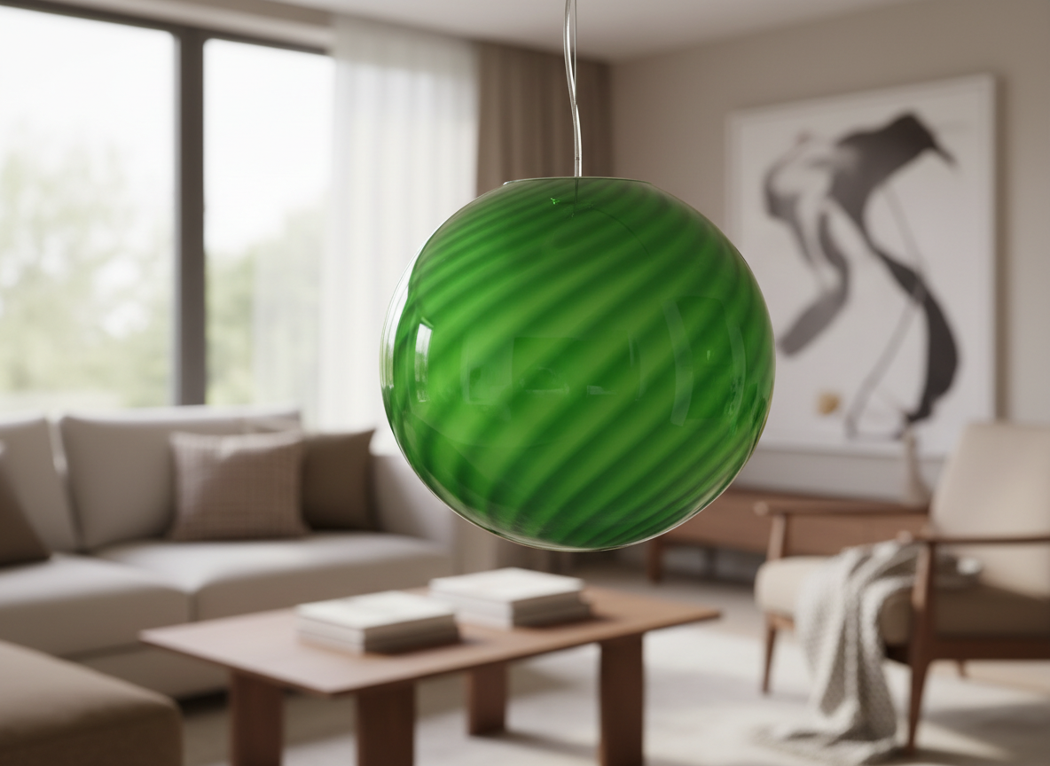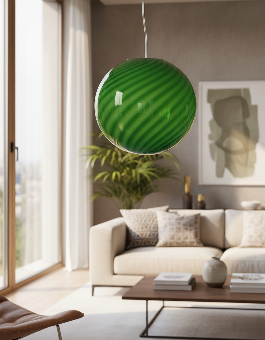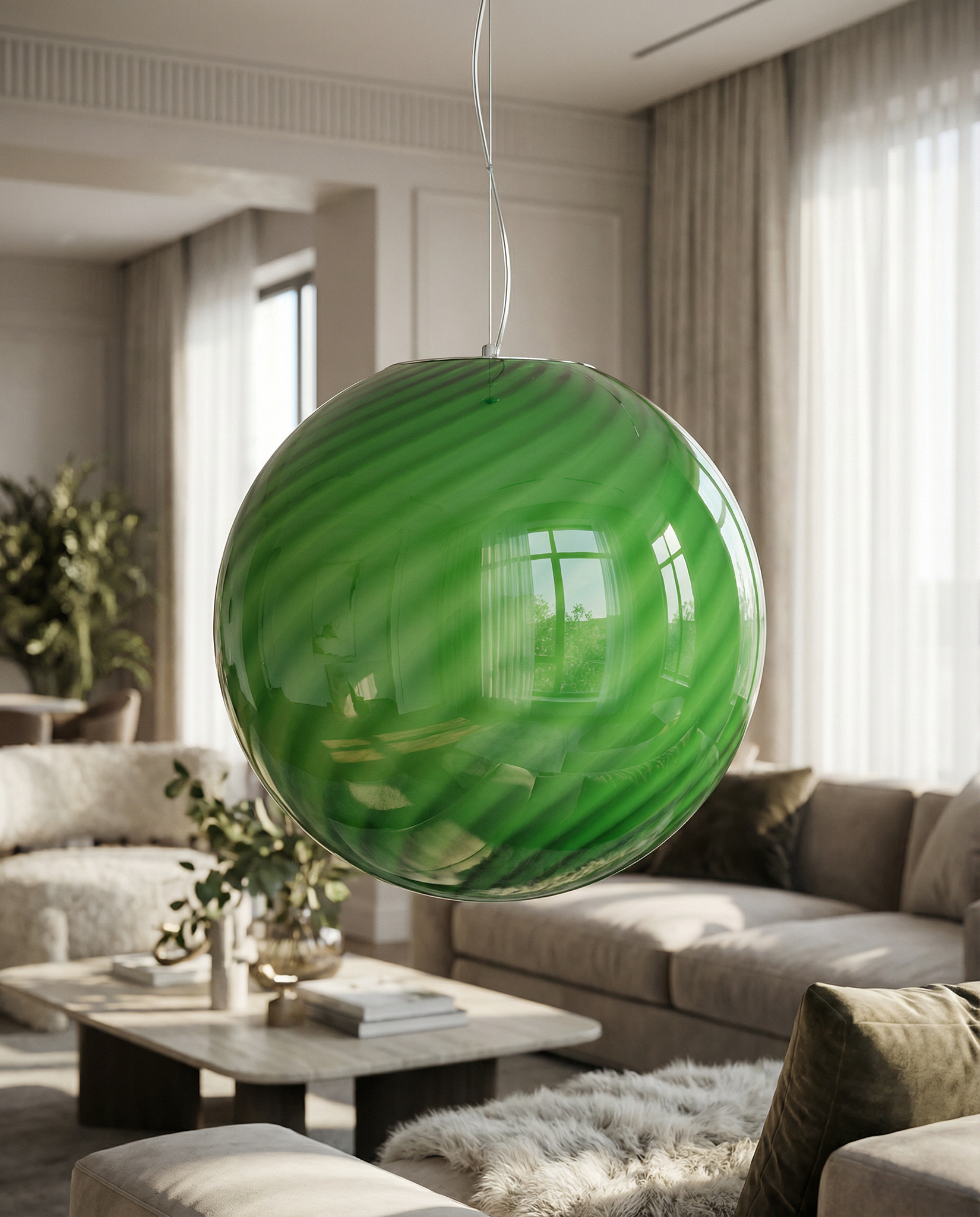 Candy Murano glass sphere pendant lamp green lime swirl D40
