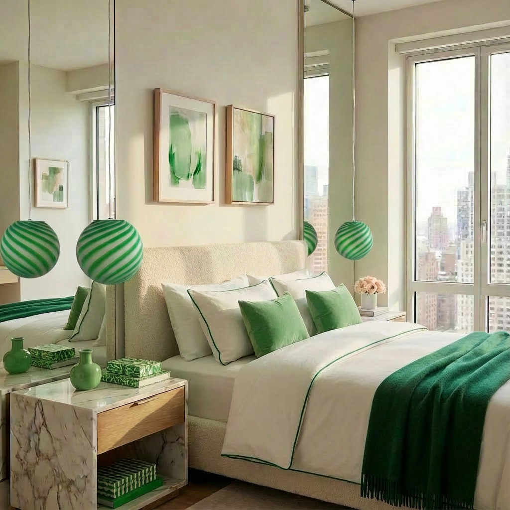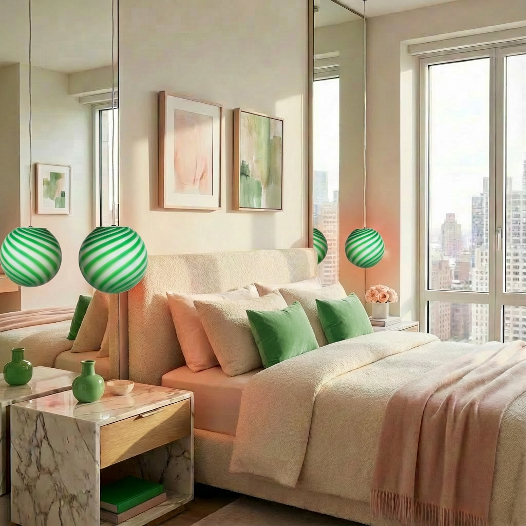 Candy Murano glass sphere pendant lamp green mint swirl D20