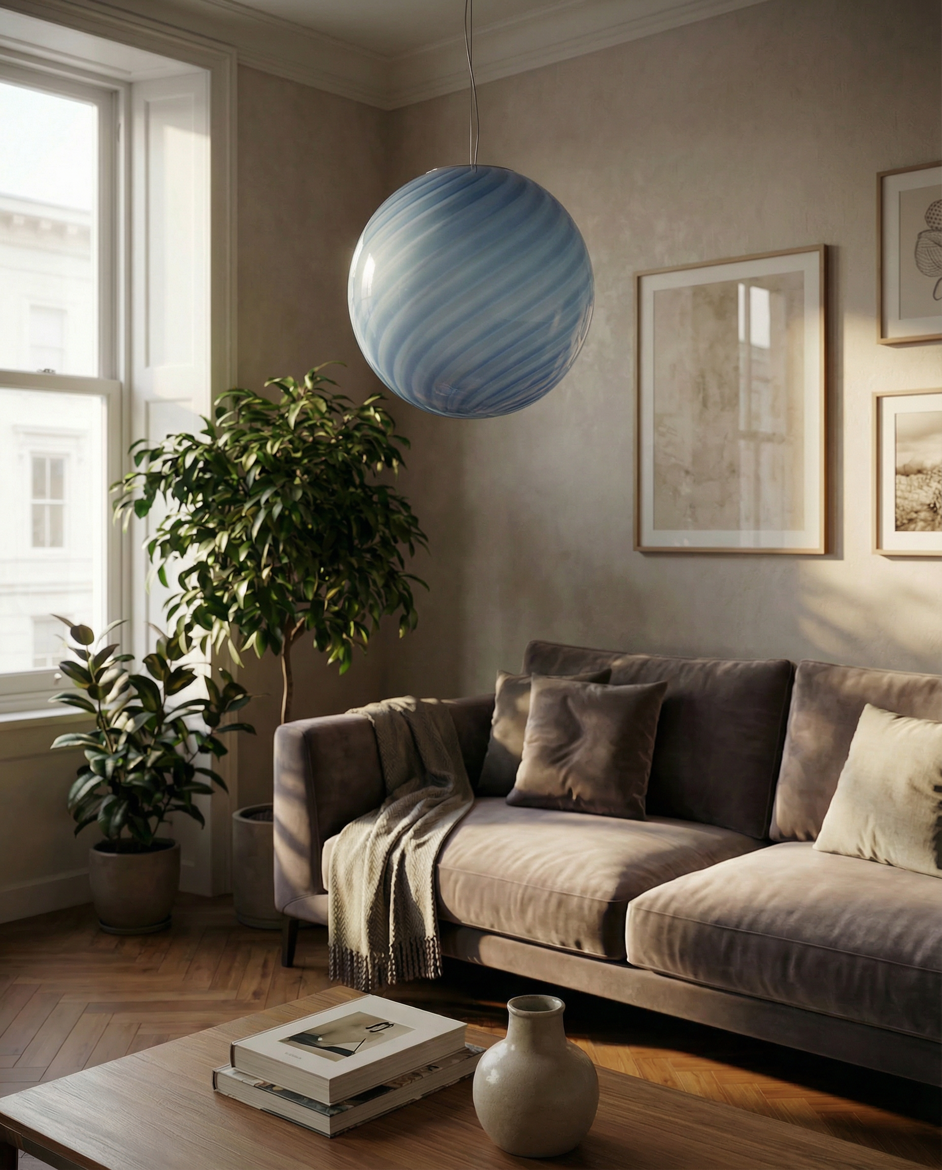 Candy Murano glass sphere pendant lamp light blue swirl D40