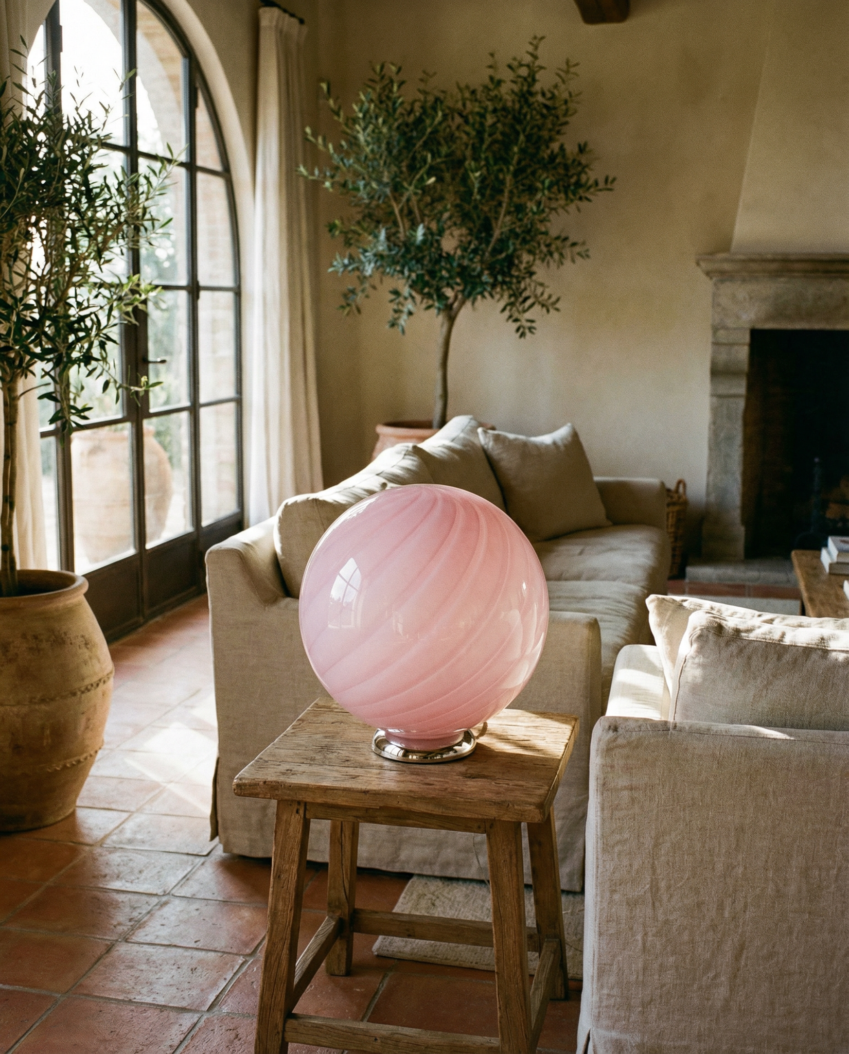 Due to its artisanal production, each lamp may show subtle variations, tiny air bubbles, or other natural features of hand-blown glass. The appearance of the color can shift slightly depending on the lighting environment.