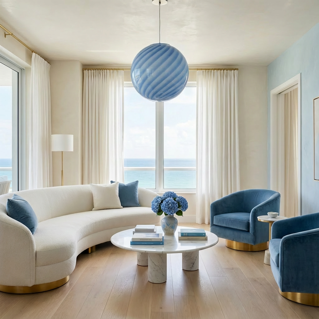 Lampada a sospensione Candy a sfera in vetro di Murano azzurro chiaro a vortice D30