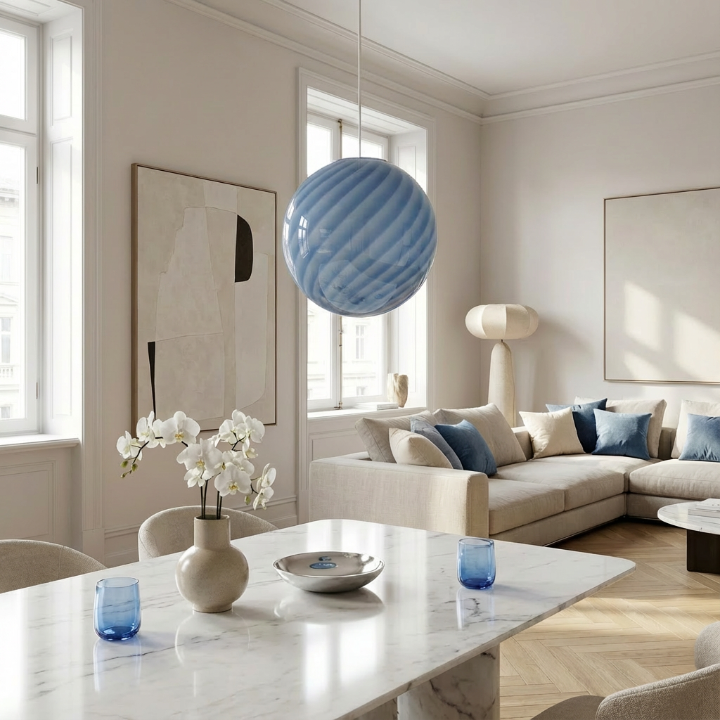 Data la sua produzione artigianale, ogni lampada può presentare leggere variazioni, minuscole bolle d'aria o altre caratteristiche naturali del vetro soffiato a mano. L'aspetto del colore può variare leggermente a seconda dell'illuminazione ambientale.