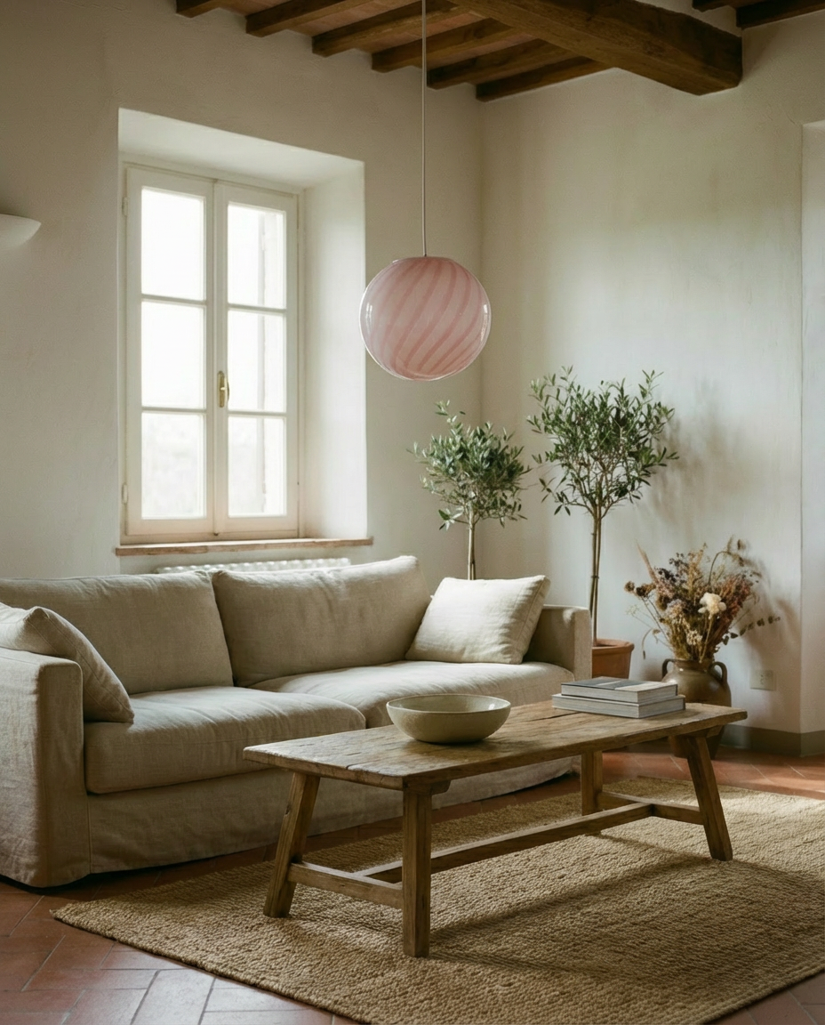 Data la sua produzione artigianale, ogni lampada può presentare leggere variazioni, minuscole bolle d'aria o altre caratteristiche naturali del vetro soffiato a mano. L'aspetto del colore può variare leggermente a seconda dell'illuminazione ambientale.