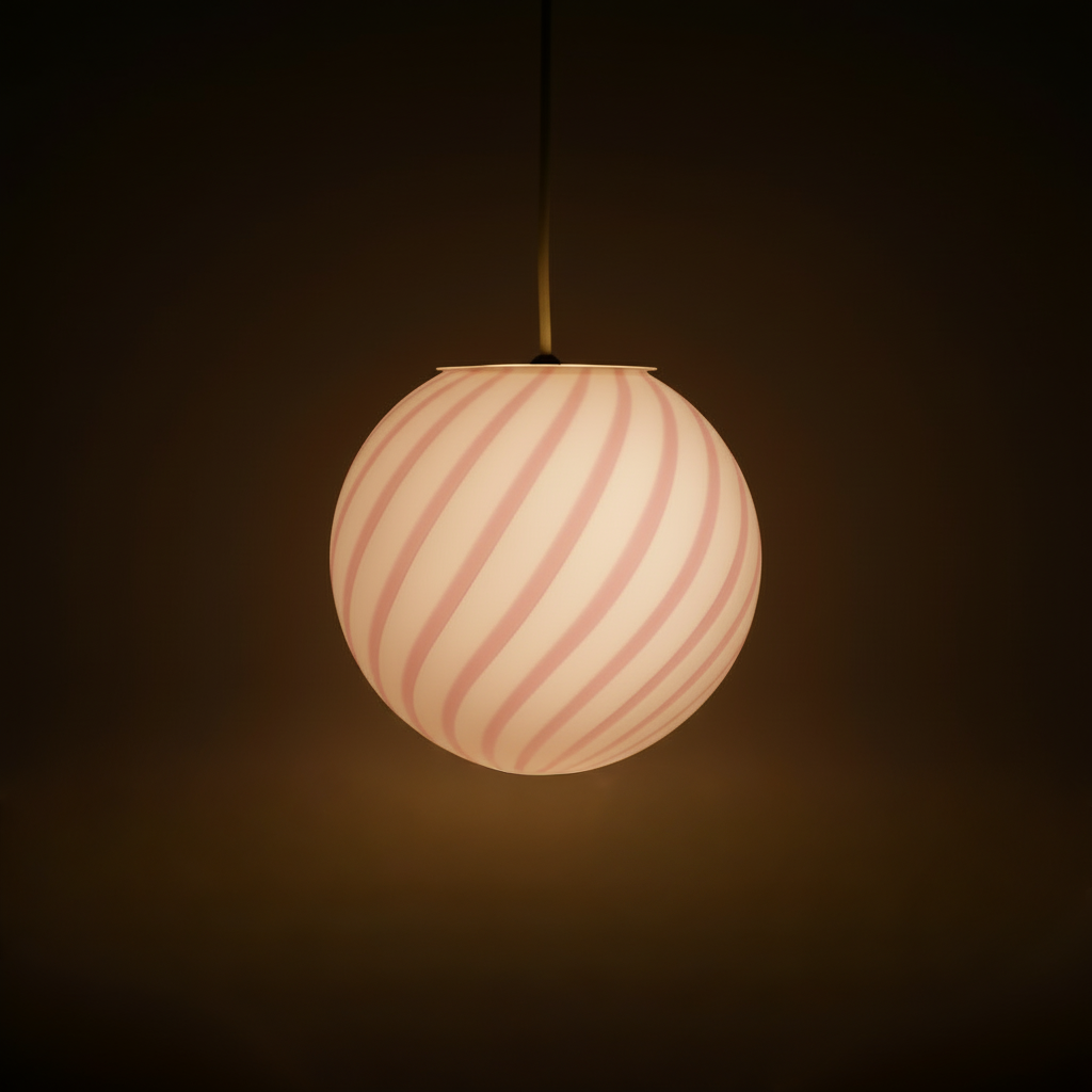 Lampada a sospensione Candy a sfera in vetro di Murano con vortice rosa marshmellow D20