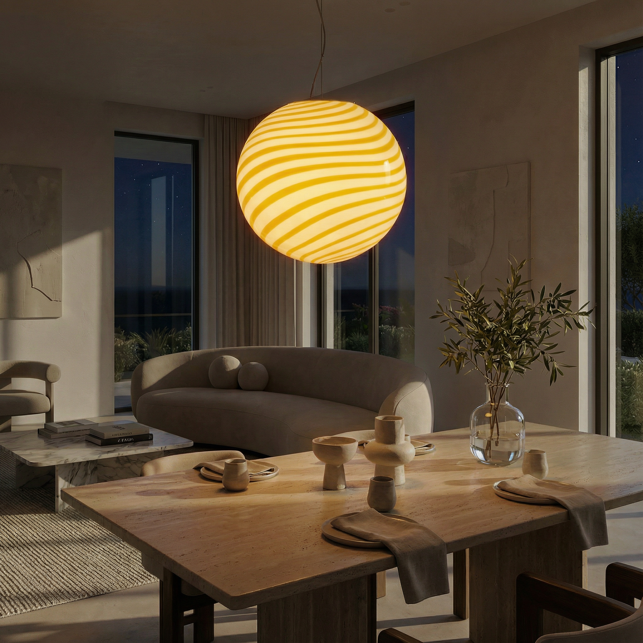 Data la sua produzione artigianale, ogni lampada può presentare leggere variazioni, minuscole bolle d'aria o altre caratteristiche naturali del vetro soffiato a mano. L'aspetto del colore può variare leggermente a seconda dell'illuminazione ambientale.