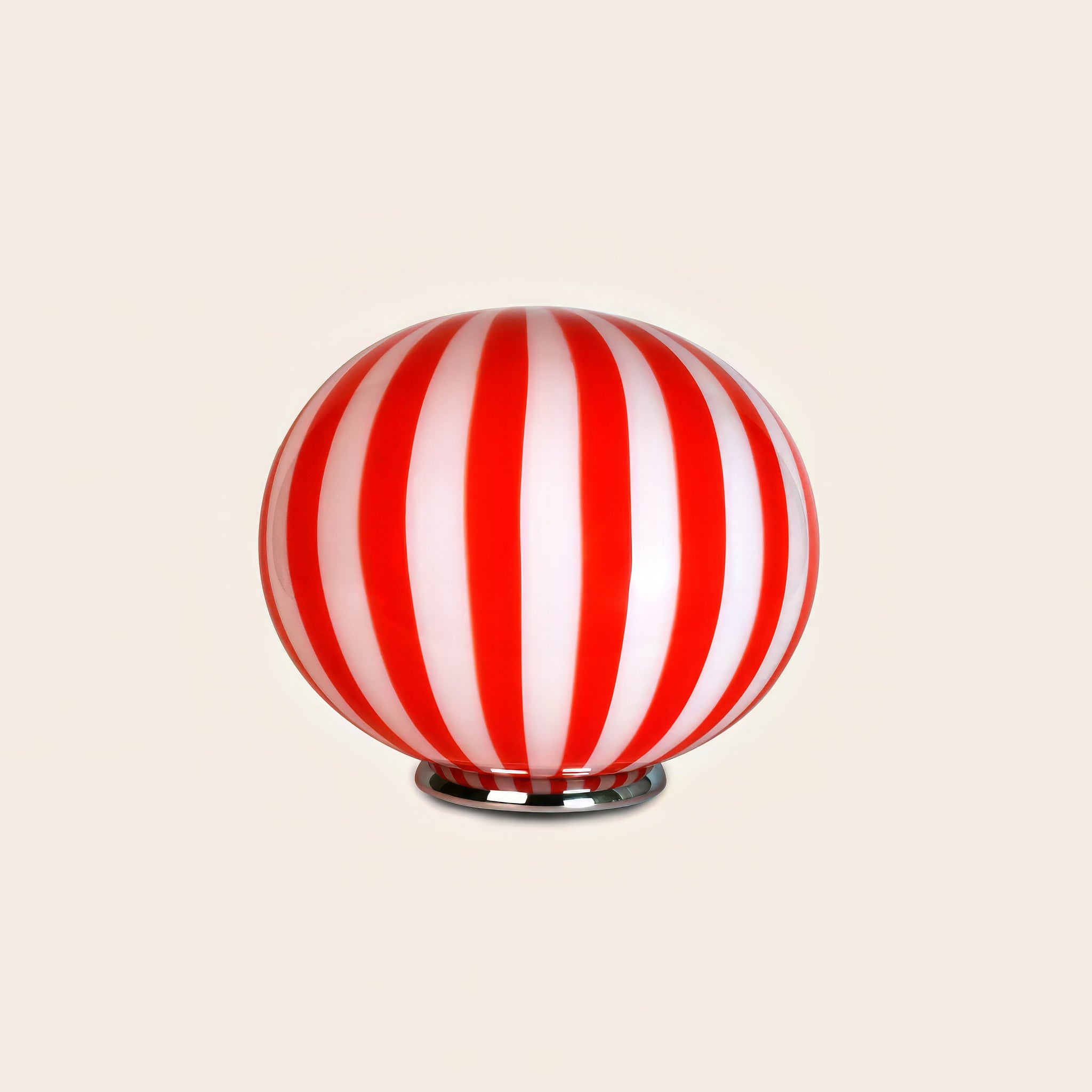 La lampada Murano Candy è realizzata a Venezia, in Italia, con le tradizionali tecniche del vetro soffiato a bocca ed è dotata di un portalampada E27. Include una base in metallo. L'opera misura 40 cm di diametro e pesa circa 5 kg.