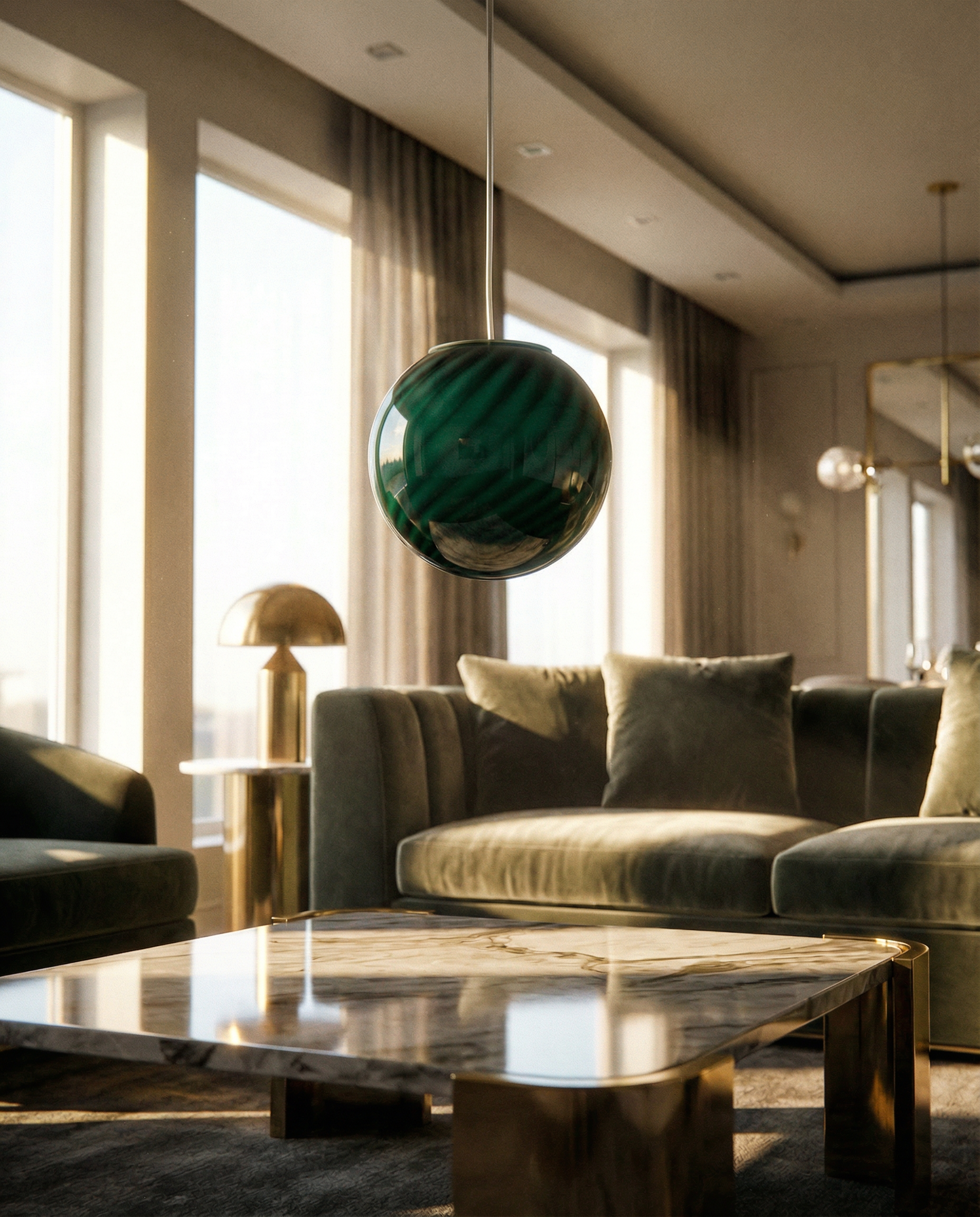 Data la sua produzione artigianale, ogni lampada può presentare leggere variazioni, minuscole bolle d'aria o altre caratteristiche naturali del vetro soffiato a mano. L'aspetto del colore può variare leggermente a seconda dell'illuminazione ambientale.