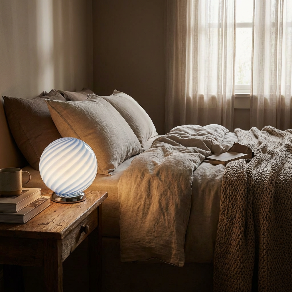 Data la sua produzione artigianale, ogni lampada può presentare leggere variazioni, minuscole bolle d'aria o altre caratteristiche naturali del vetro soffiato a mano. L'aspetto del colore può variare leggermente a seconda dell'illuminazione ambientale.