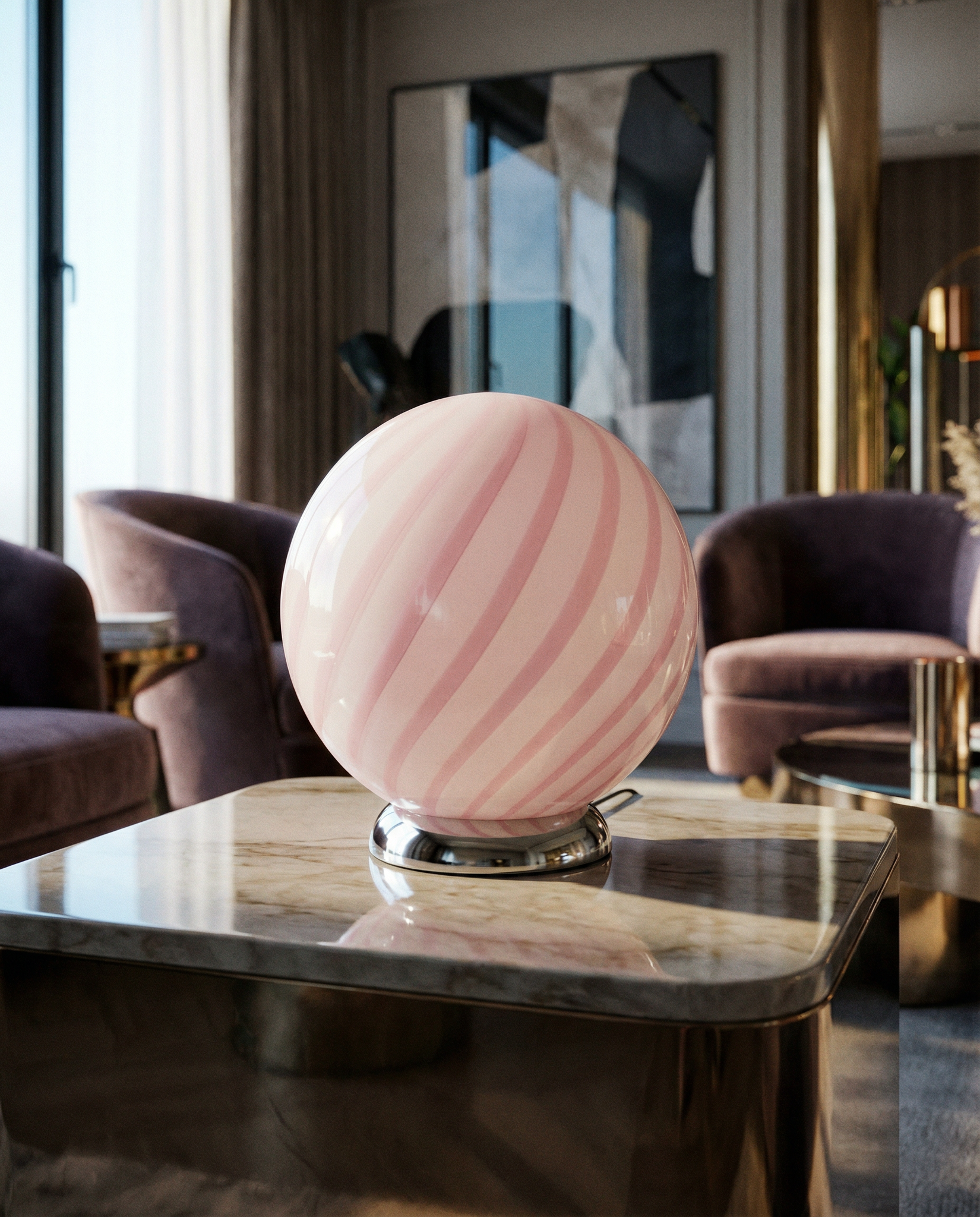 Lampada da tavolo Candy a sfera in vetro di Murano rosa marshmallow D20