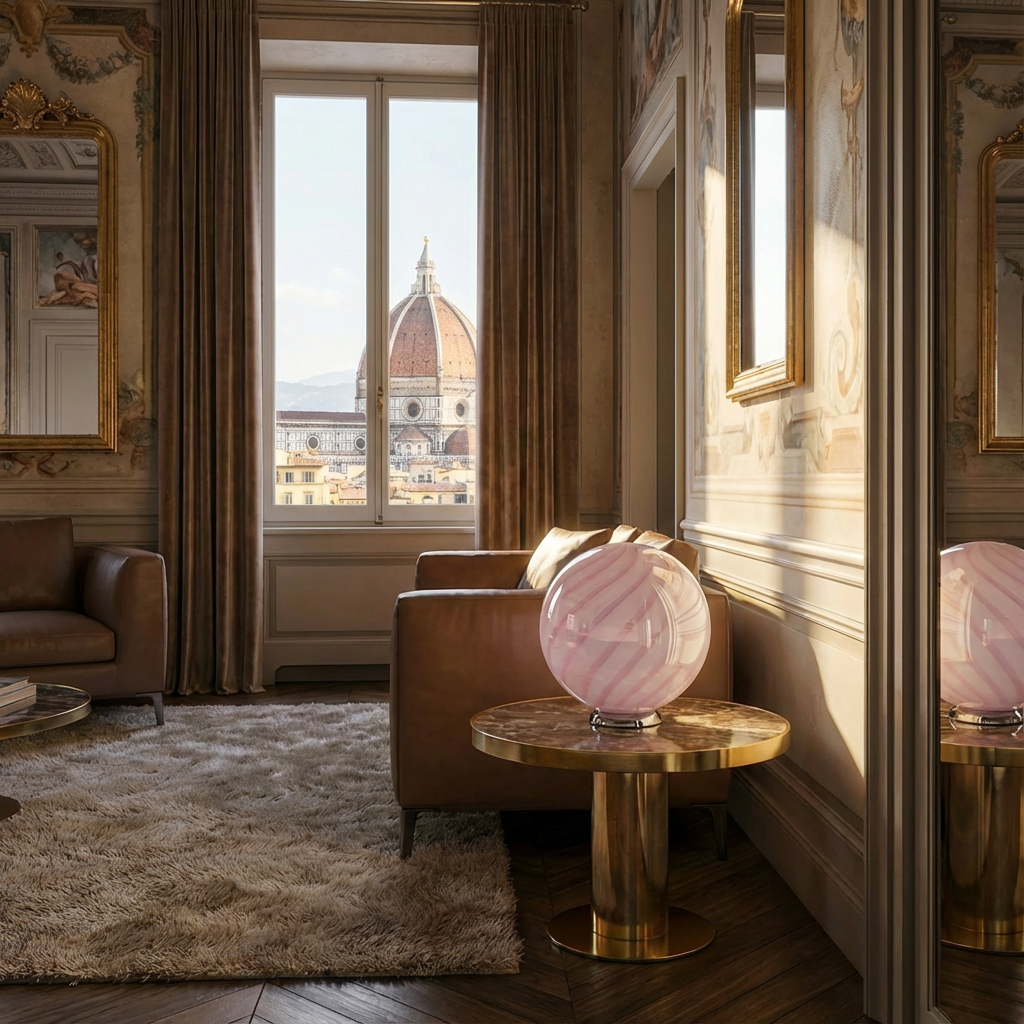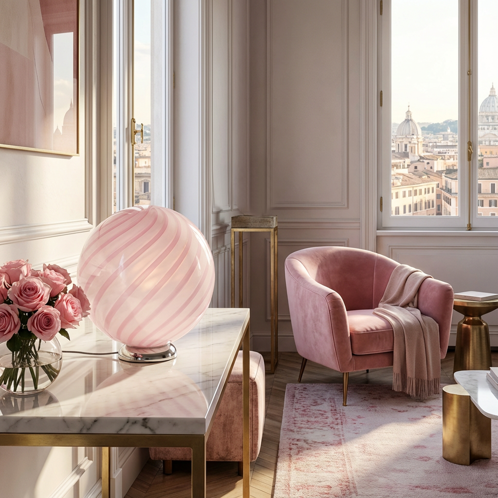 Lampada da tavolo Candy a sfera in vetro di Murano rosa marshmallow D30