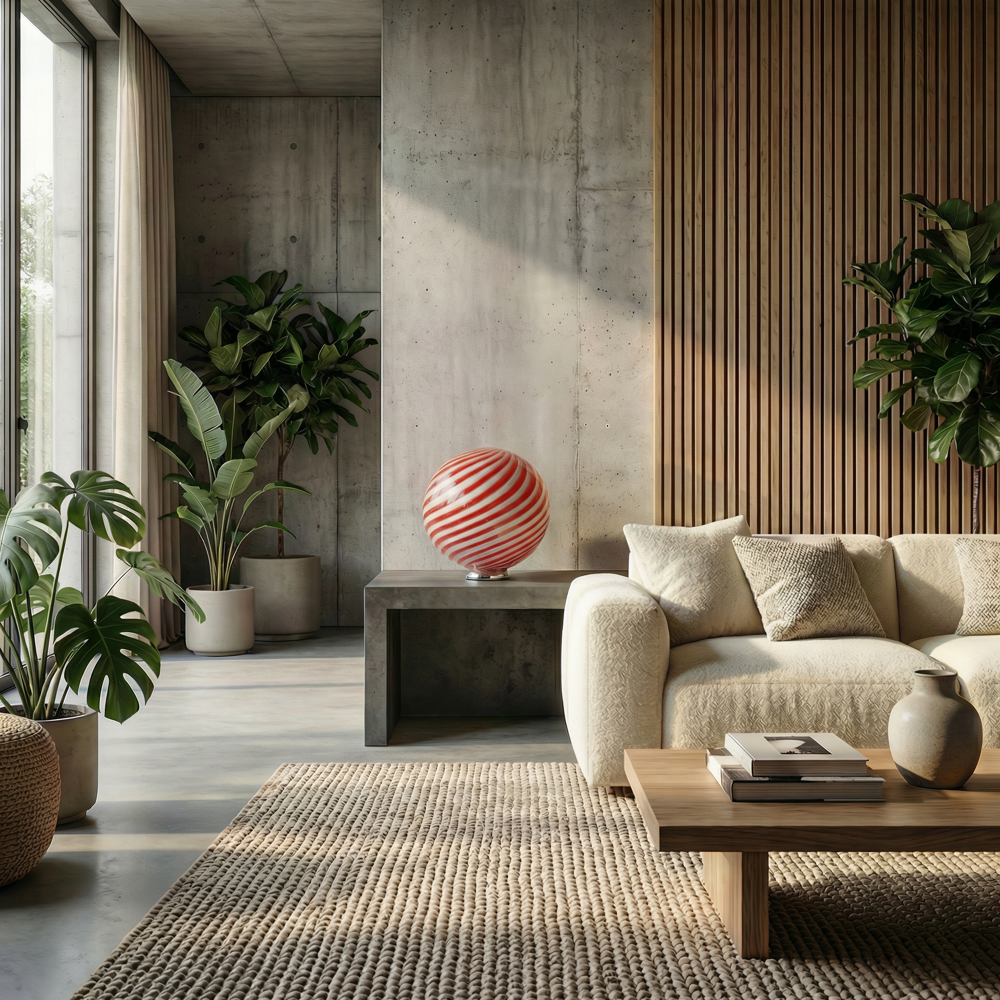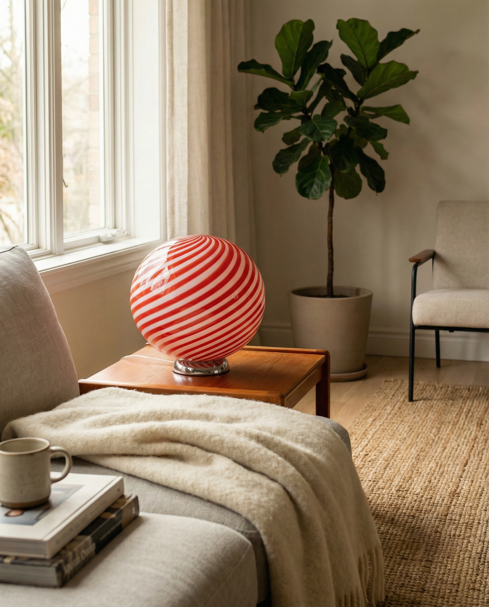 Lampada da tavolo Candy a sfera in vetro di Murano, spirale rossa e bianca D30
