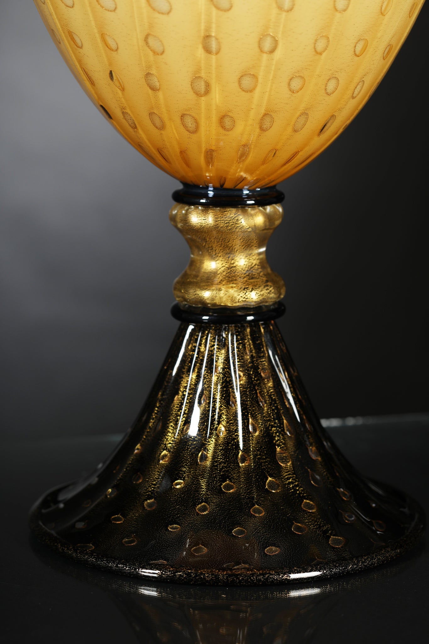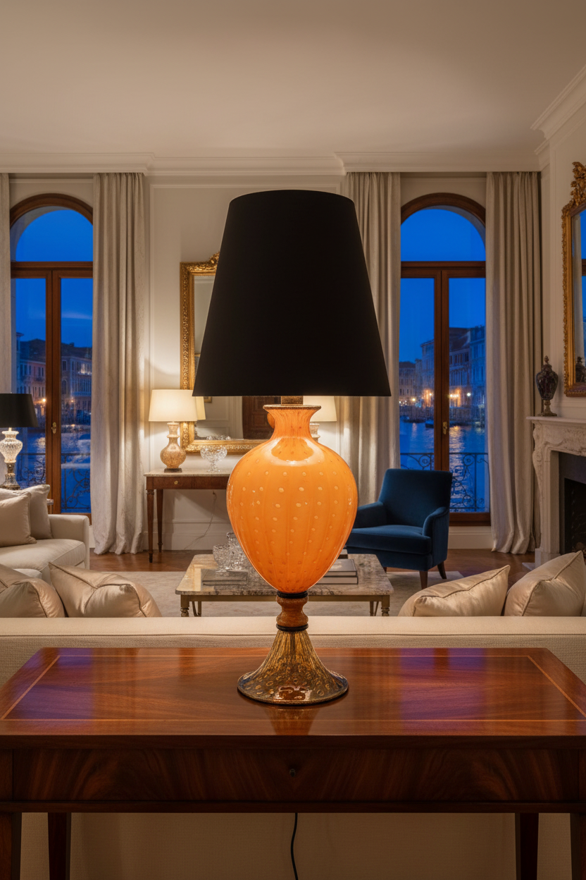 La lampada "Venezia" è un capolavoro dell'arte vetraria muranese, realizzata a mano a Venezia, Italia, utilizzando tecniche tradizionali di soffiatura a bocca affinate nel corso dei secoli. Definita da una raffinata sensibilità modernista, l'opera esprime un perfetto equilibrio tra eleganza scultorea e maestria artigianale. Ogni elemento è plasmato interamente a mano, preservando l'autenticità e la qualità espressiva che contraddistinguono la vera artigianalità muranese.