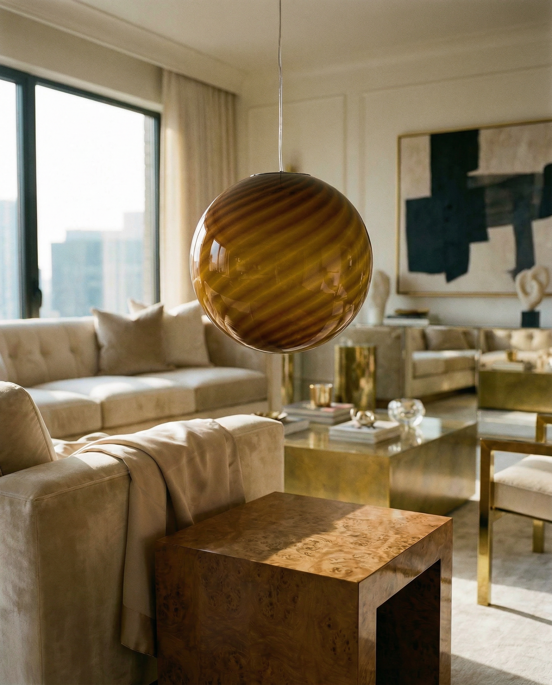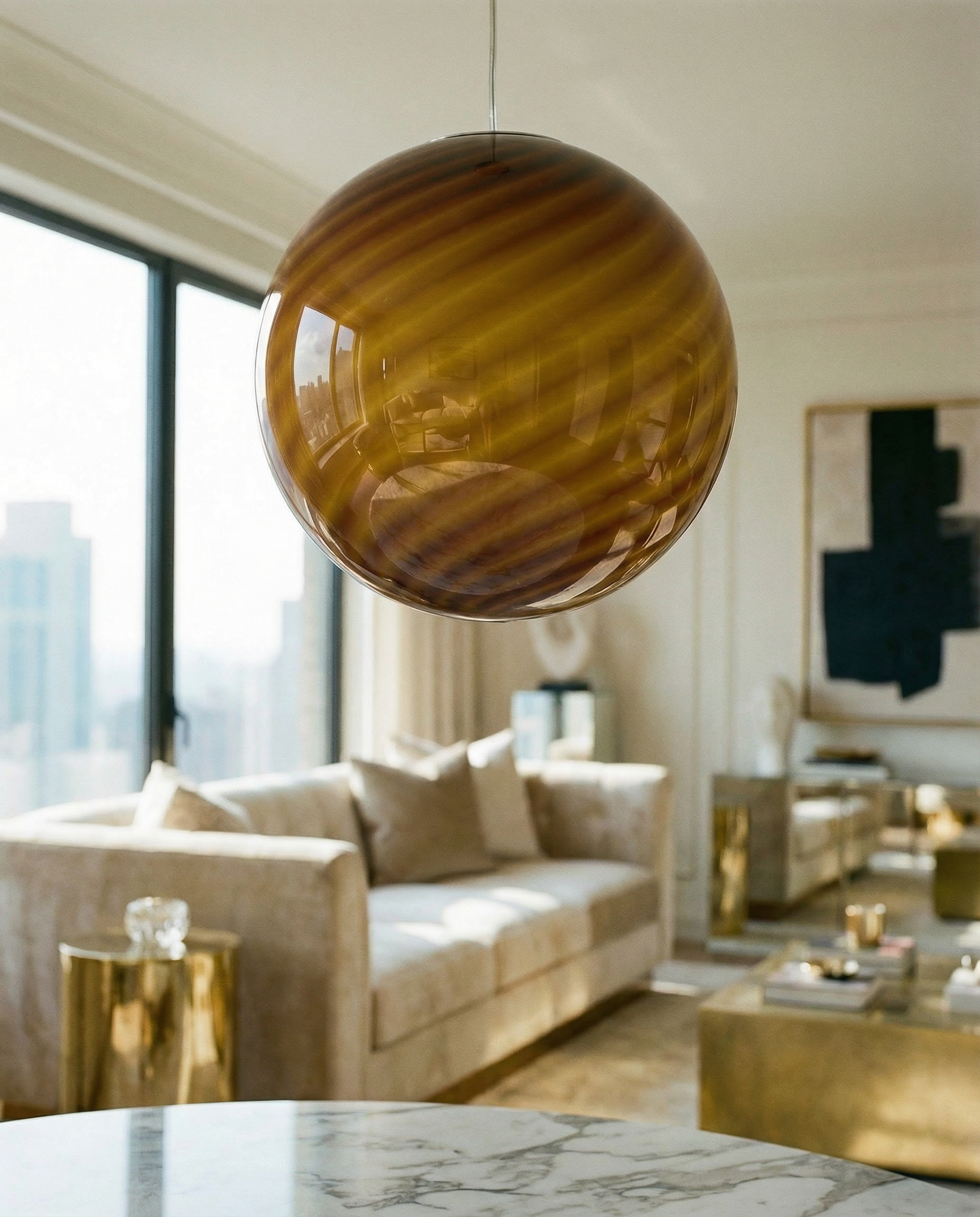 Candy Murano glass sphere pendant lamp toffee swirl D30
