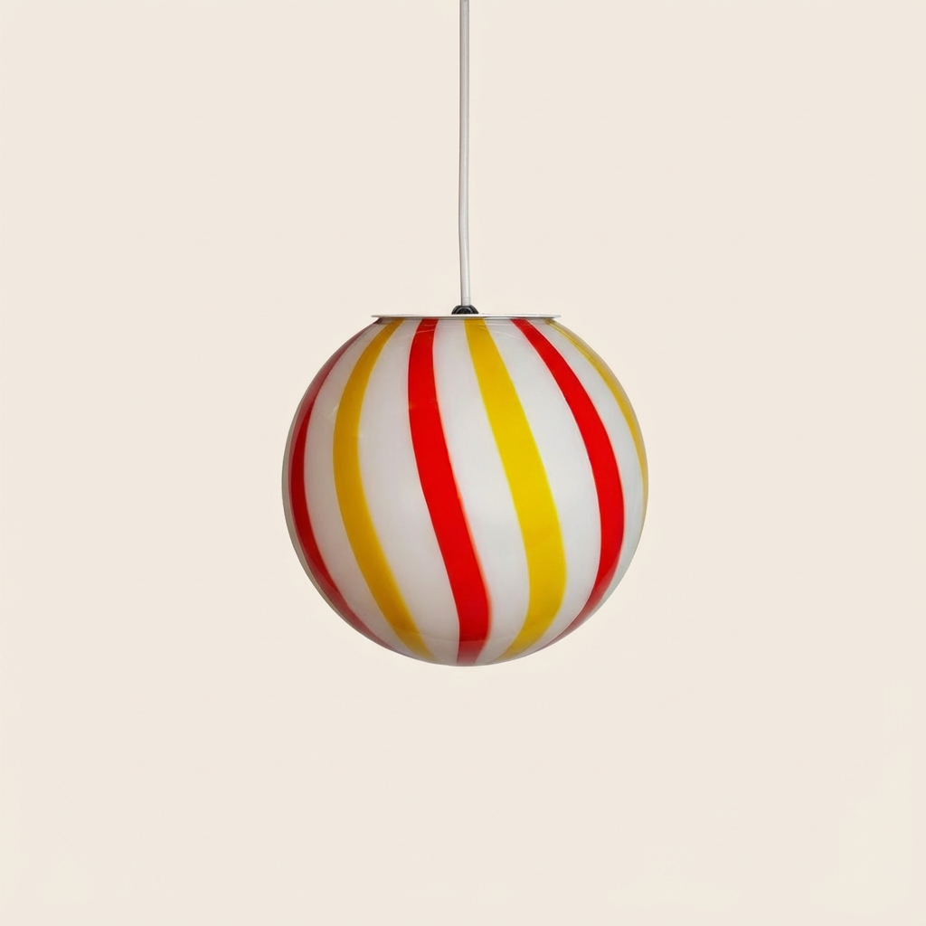 Candy Murano glass sphere pendant lamp "Una Festa!" red and yellow soft swirl D20