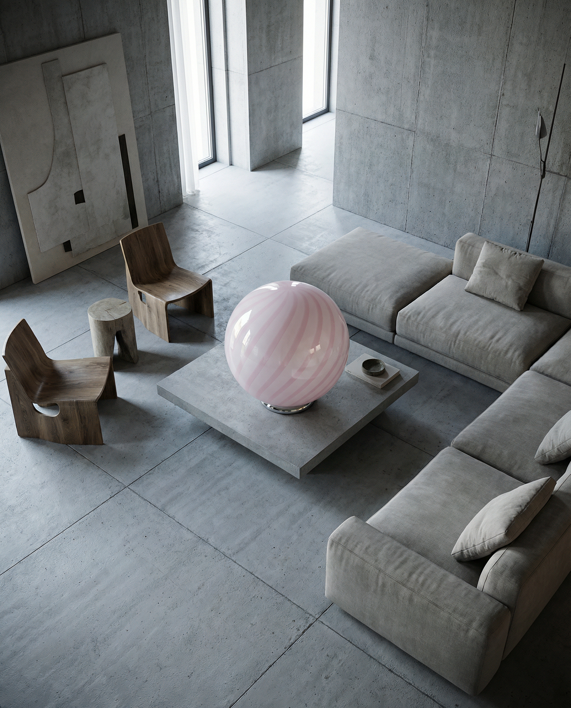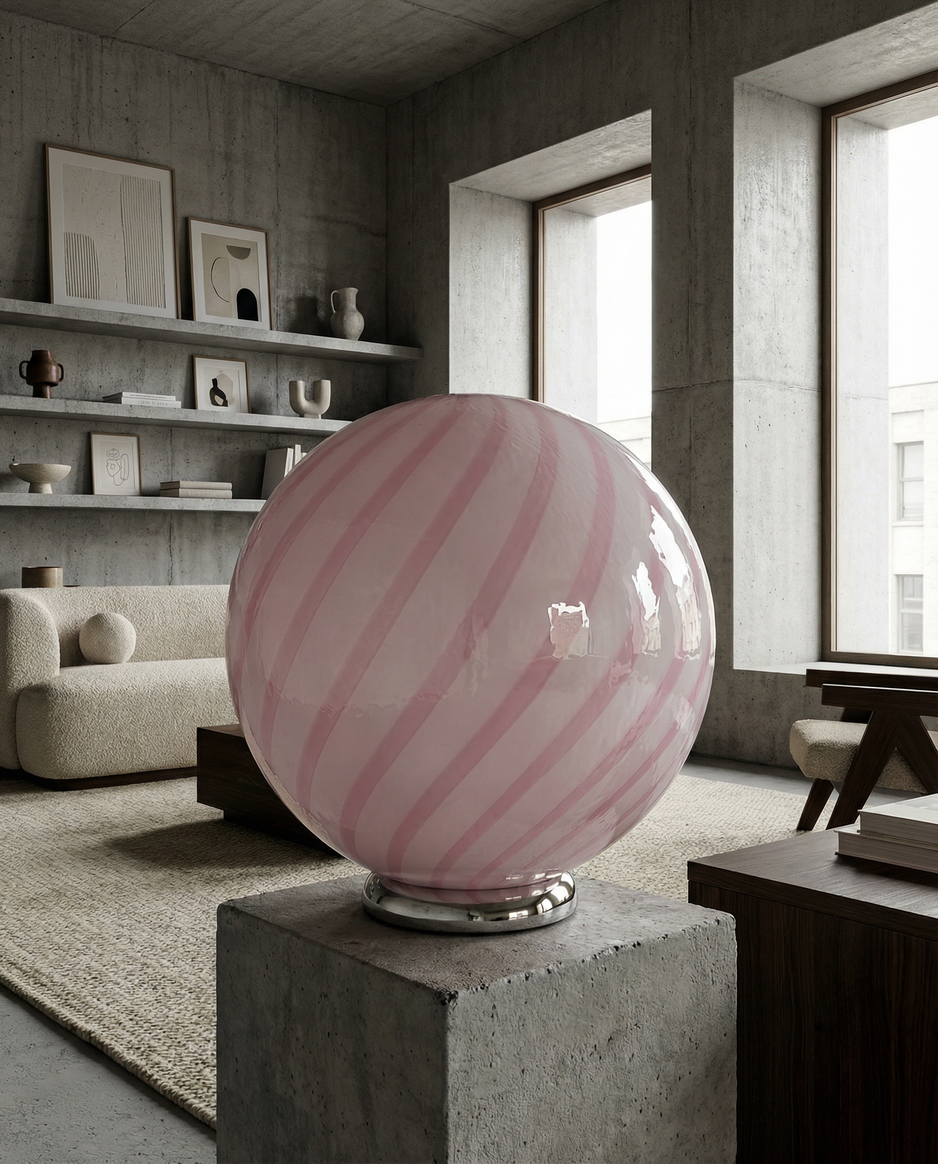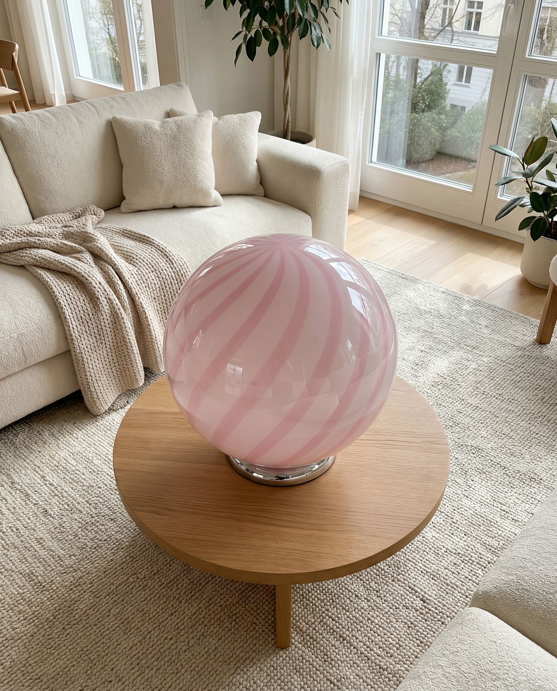 Candy Murano glass sphere table lamp marshmellow pink swirl D40