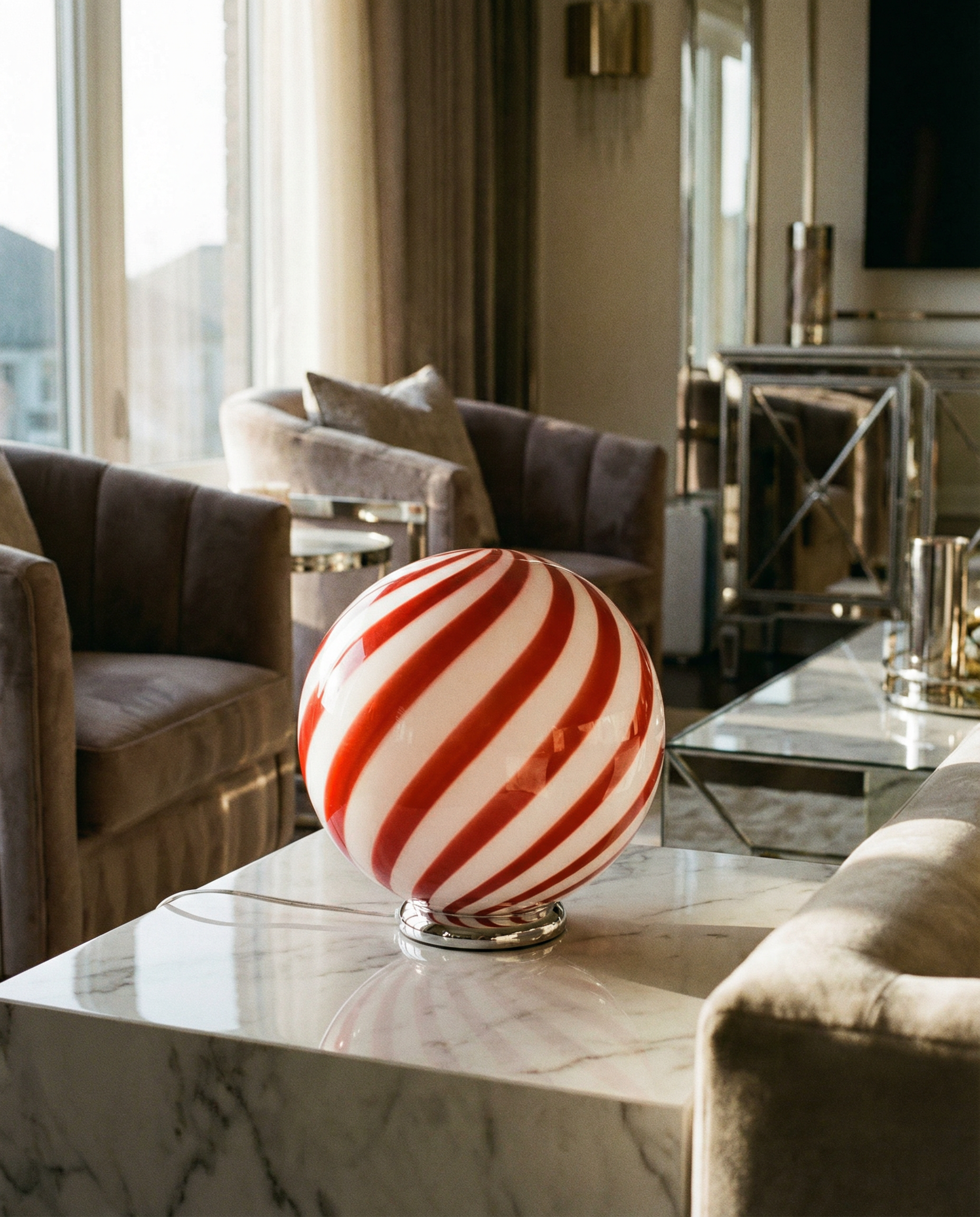 Candy Murano glass sphere table lamp wild cherry red swirl D40